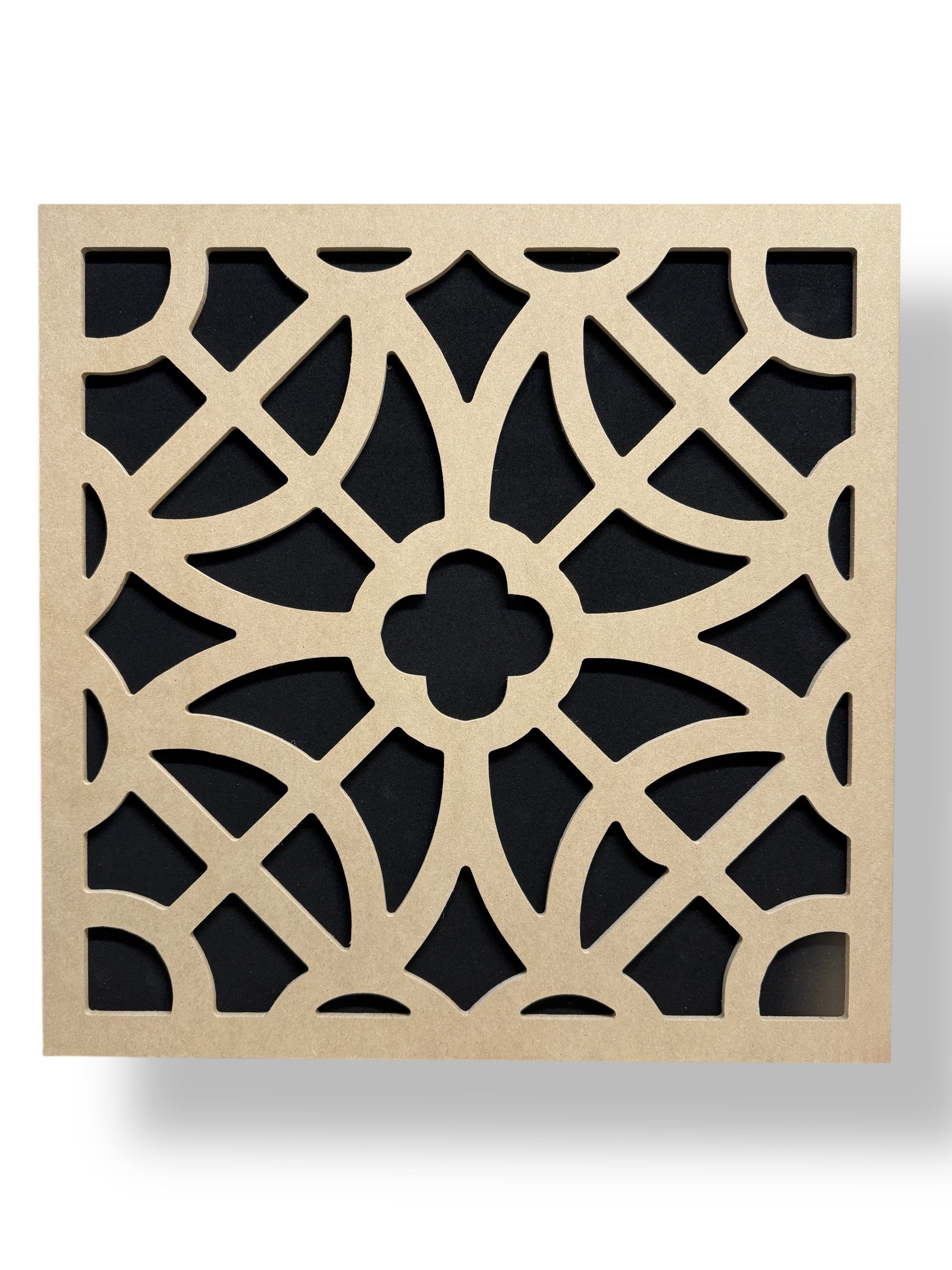 Style #30-1 “Quartz” is inspired by the intricate, crystalline geometry of natural quartz. With softly interwoven curves centered around a delicate quatrefoil, this panel brings elegance, clarity, and movement into your space—while providing practical acoustic control.