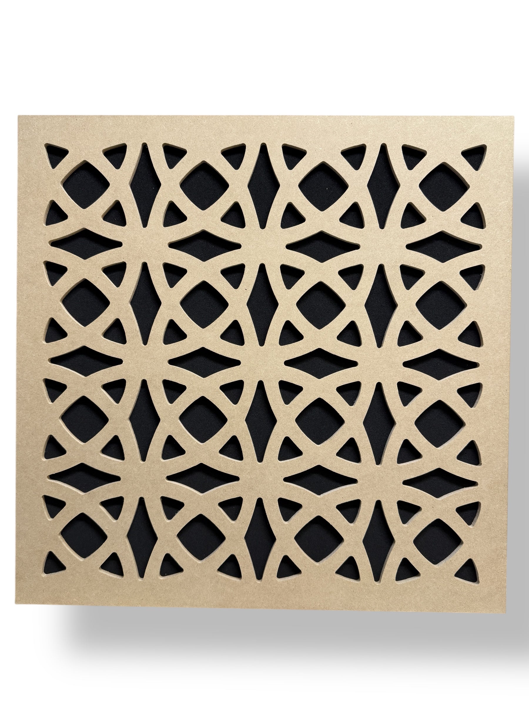Delicate yet structured, Style #62-1 “Moss” draws inspiration from the organic patterns of moss spreading quietly across stone and wood. Its softly repeating geometric curves mimic nature’s gentle growth—bringing harmony and understated beauty to modern spaces. Enhanced with 1/8” sound-absorbing neoprene foam backing, these panels not only elevate the visual appeal of your walls but also help to calm unwanted echoes and improve acoustic comfort.